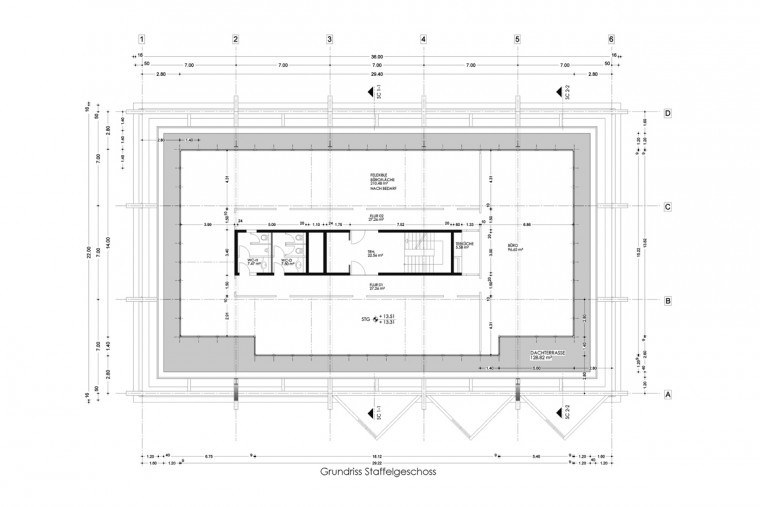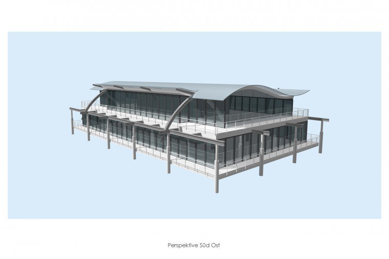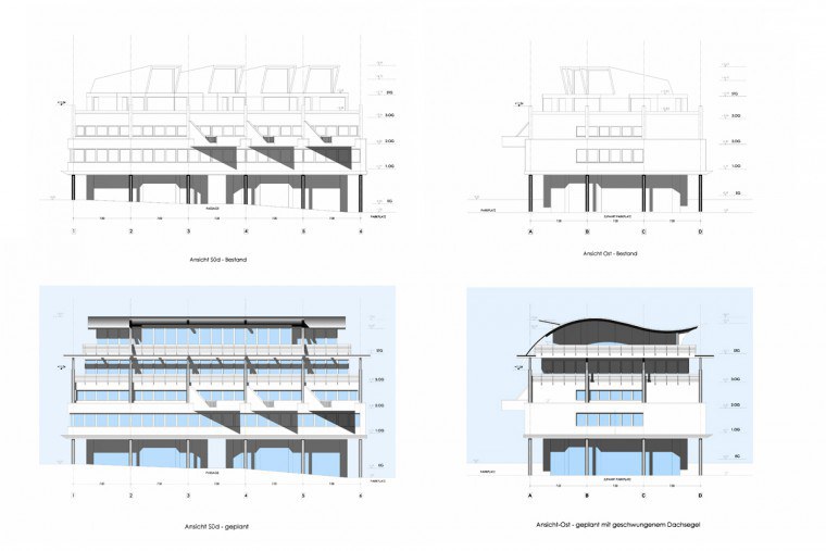 Ein Bürogebäude erhält 2 zusätzliche Geschosse als Ergänzung. Das bestehende Flachdach wird verlassen und als ein festes Segel neu begriffen.